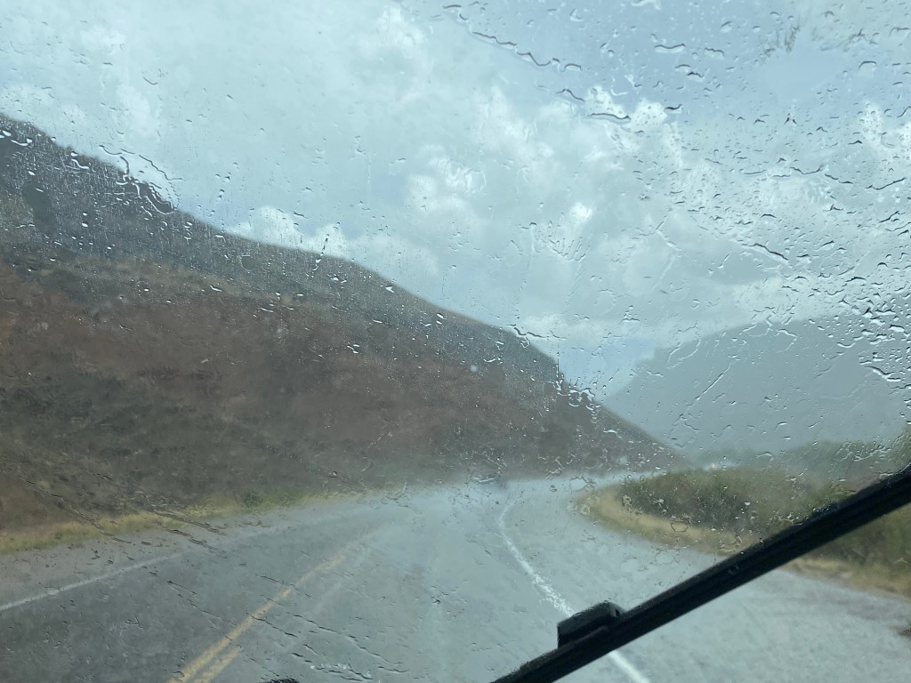 The group from California picking me and Trini in Las Vegas Notice the stool to help the seniors hop in the van.On our way to Zion before the downpourThe much needed rain!!!!!The Group Happy faces!!!!