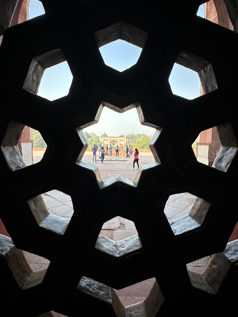 Before we had the honor to set foot in the great mausoleum, we visited a tomb not far from Taj Mahal – the Itmad-Ud-Daulah also known as “The Baby Taj” for its similarity to the Taj. This tomb was designed by Empress Noor Jahan for her father and was the first Mughal monument that used marble inlay work.
