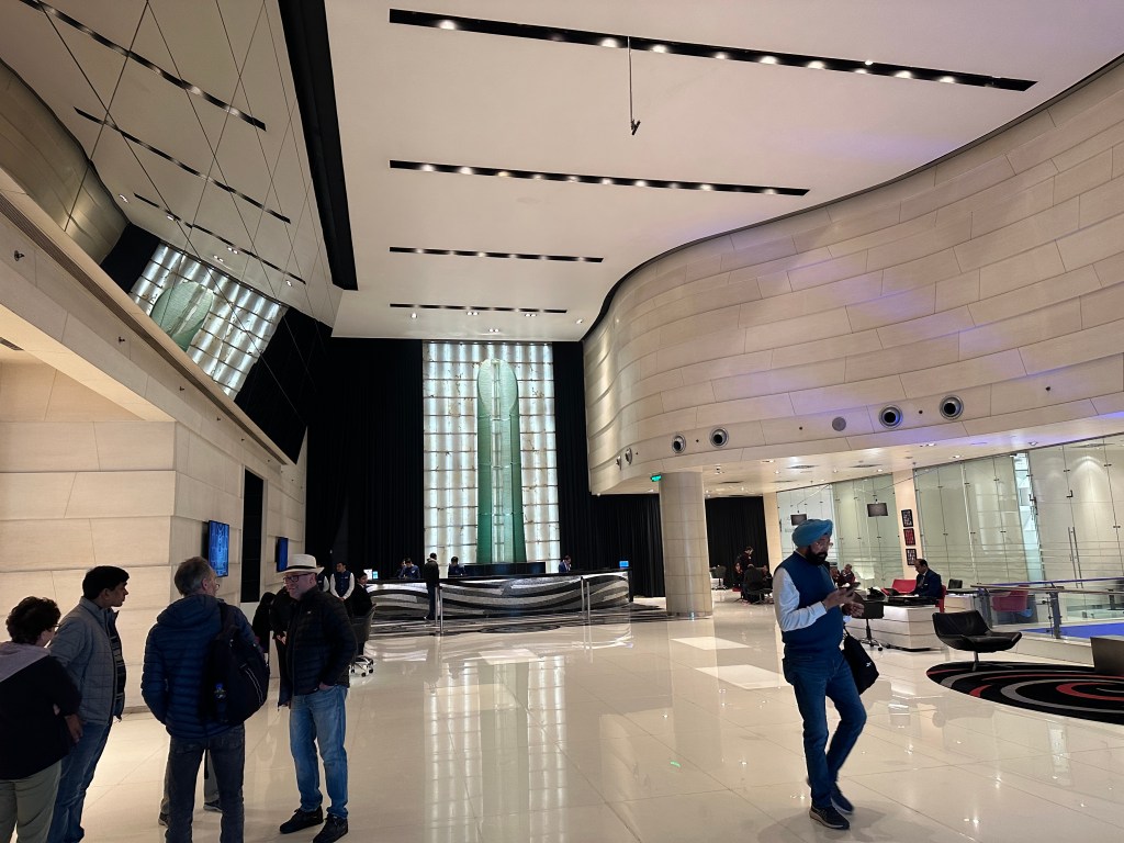 We landed at Indira Gandhi International Airport in New Delhi a few minutes after 10:00 pm; however, by the time we got out of the airport and reached our hotel (45 minutes drive) it was already 1:00 am. At least our travel agent booked us at the Le Meridien (a Marriott-Bonvoy chain). It has a very impressive modern and spacious interior!