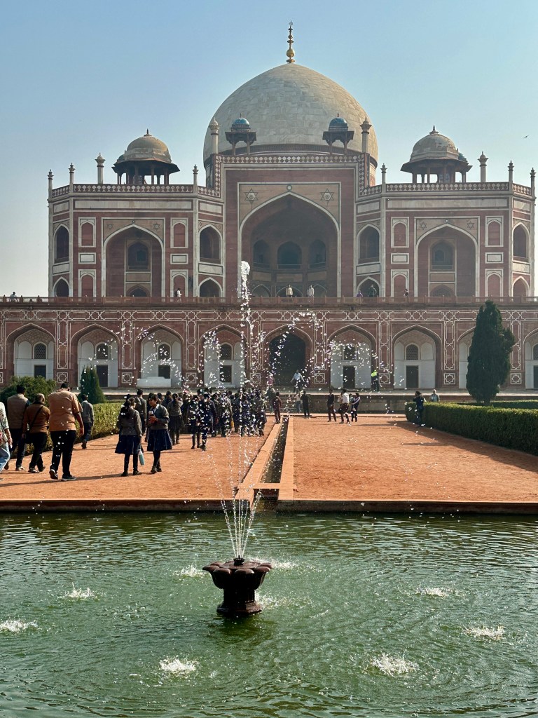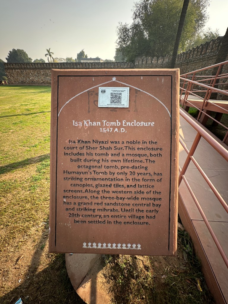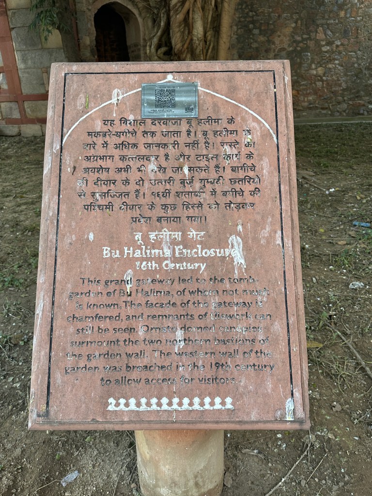 HUMAYUN’S TOMB IN THE BACKGROUNDNotice the entrance sign above -separate for foreigners and Indian!The early morning mist makes the structure a little hazy