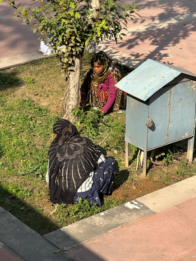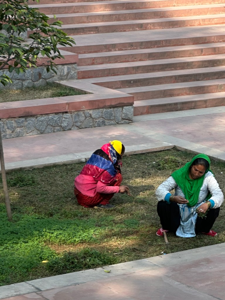 Humayun’s Tomb is also referred to as the Taj Mahal of DelhiThe “groundskeepers” of the parkThe women are manually digging the weedsThe huge mosque can hold a mind-blowing 25,000 people