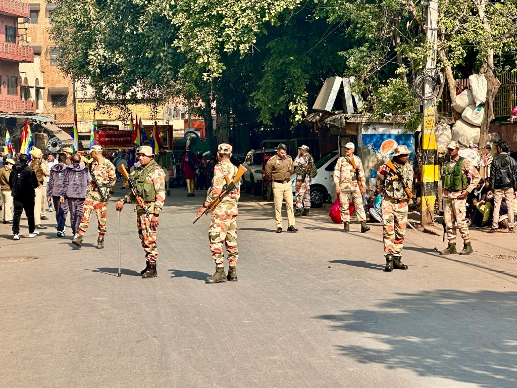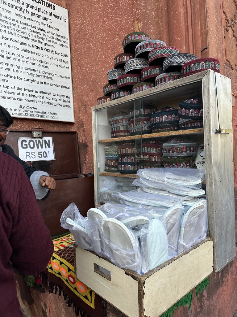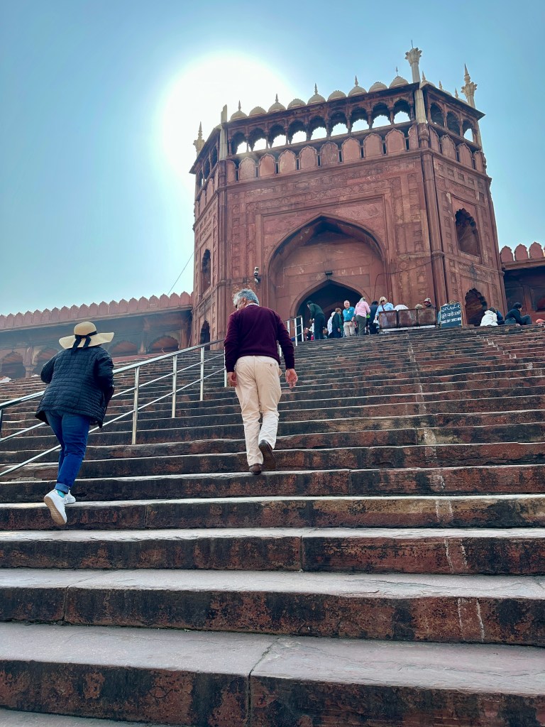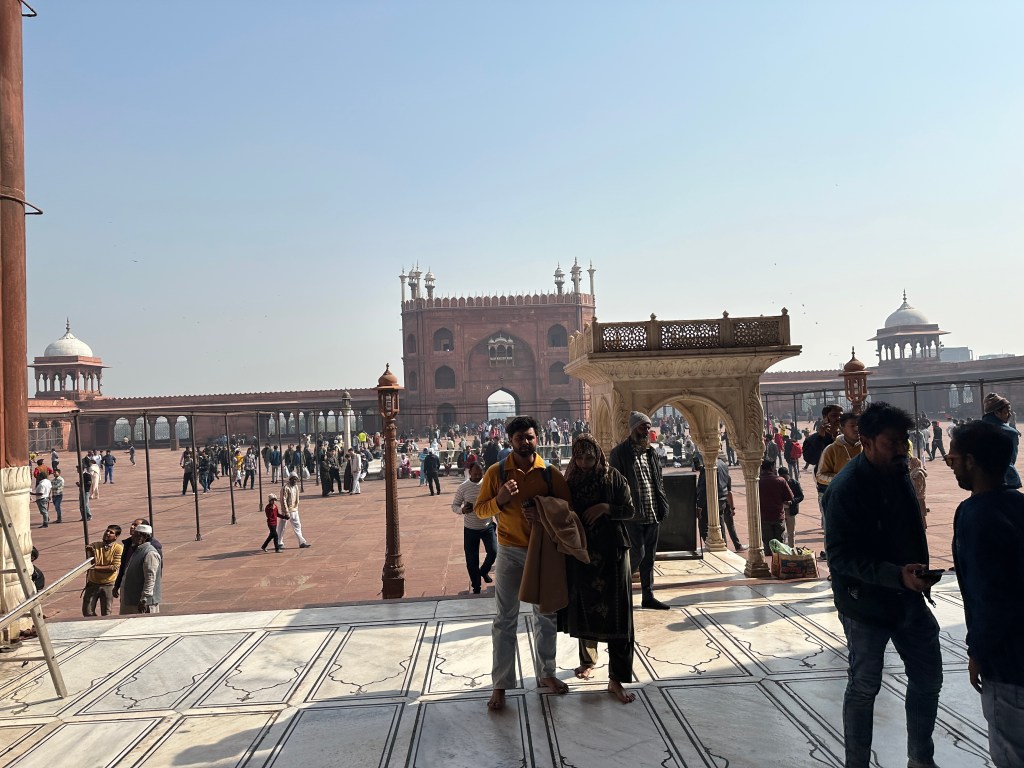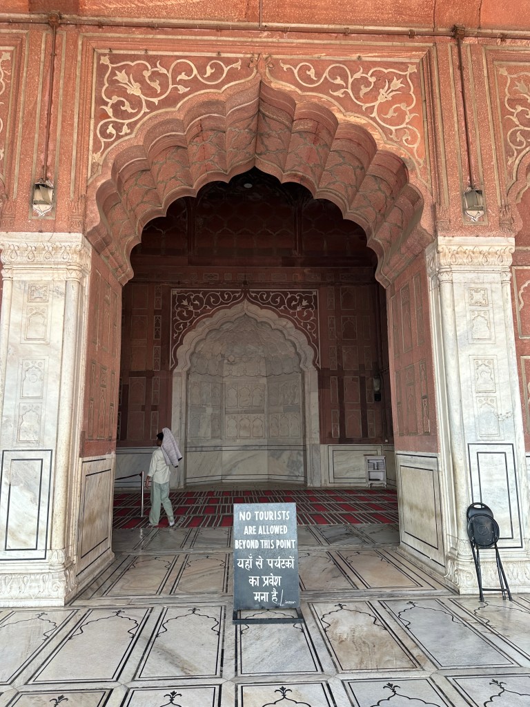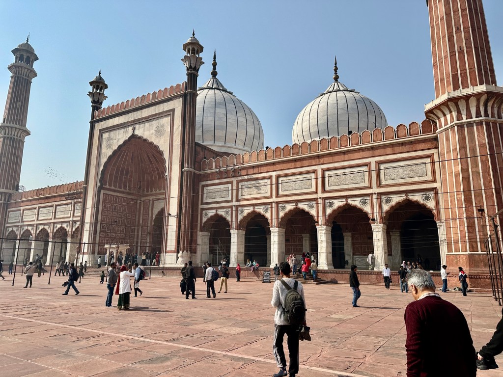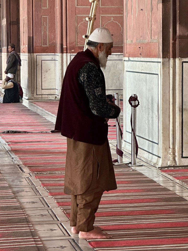 Jama Masjid is Delhi’s principal mosque, the place where the city’s Muslims traditionally gather for Friday communal prayer; Jama Masjid is Arabic for “Friday mosque.” The mosque is near the Red Fort, another of Shah Jahān’s buildings.