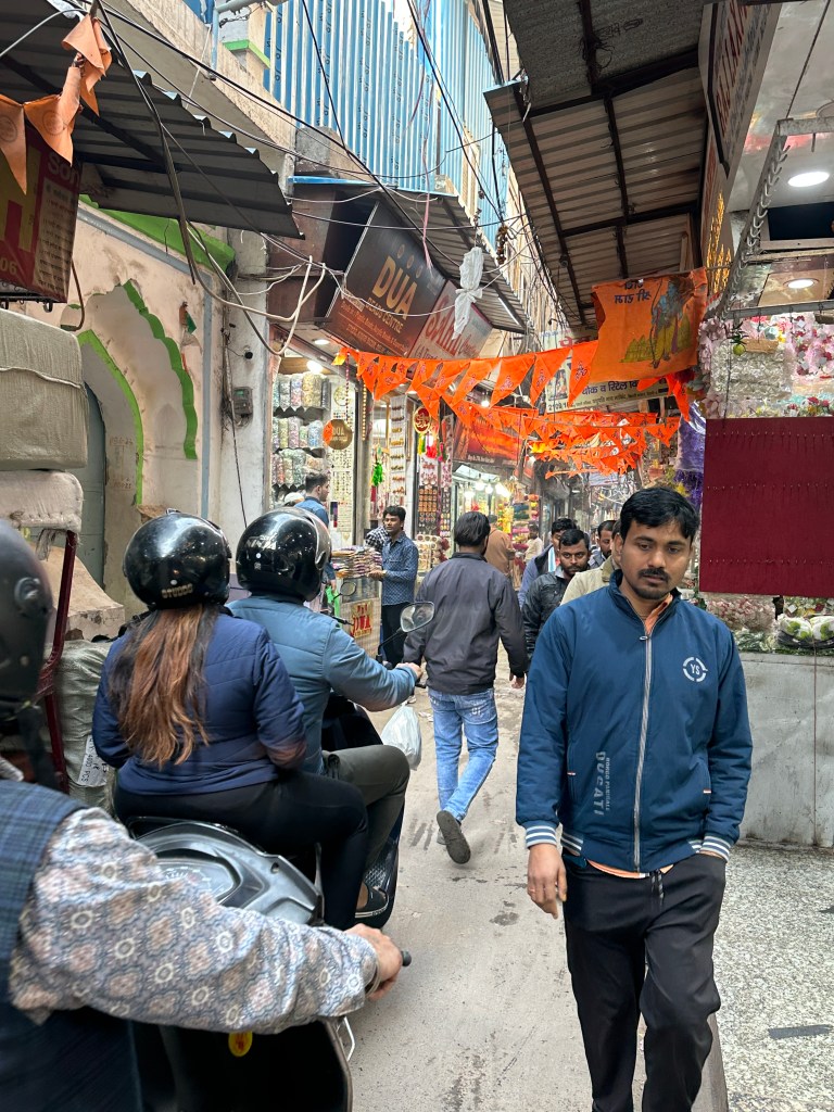 From the mosque we walked to the famous Chandni Chow Bazaars (once the the shopping avenue for Mughal royalty) lined along extremely narrow streets (and I really mean NARROW!) Motorcyles, rickshaws overflowing with their wares, tricycles and pedestrians all vying for the tiny square footage in the streets! WALK AT YOUR OWN RISK! I was grazed by a motorcycle while I was trying to capture these moments and the biker only mumbled something like an apology.
