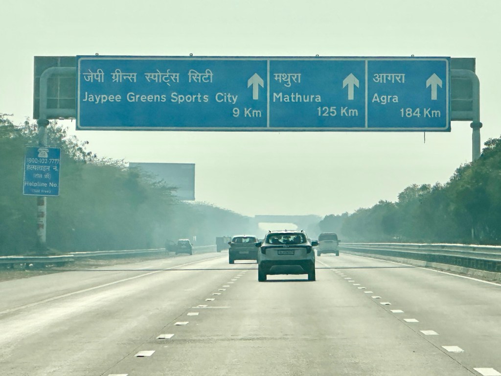 Our driver, Sunil, picked us up at La Meridien at exactly 10:00 am to drive us to Agra (about 4 hour drive, 220km). We took the expressway and was surprised to see all sorts of traffic – tricycles, bicycles, goats, and cows. Although the animals were along the side of the expressway, I was worried if they would suddenly cross which thankfully they never did.