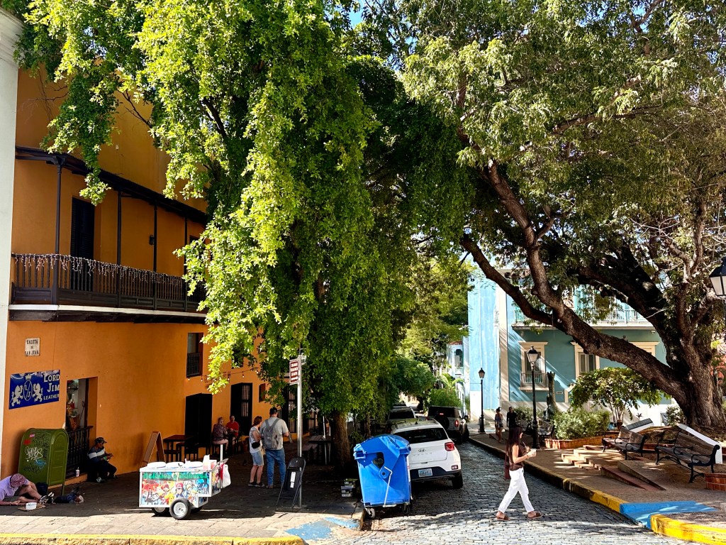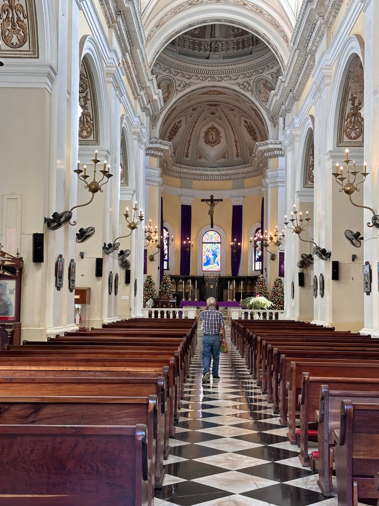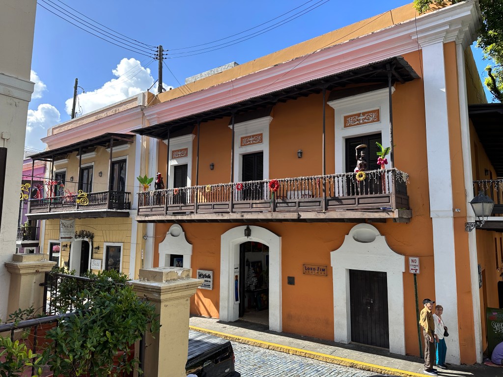 The cab driver dropped us off in the center of San Juan Viejo (Spanish for old). We saw a cathedral and the three went inside while I stayed outside and listened to the guide of a walking tour explaining the history of the cathedral. I noticed a strong resemblance of the historic buildings all over with those in Bourbon Street in New Orleans, Louisiana. Balconied two-story edifices with rustic looks.