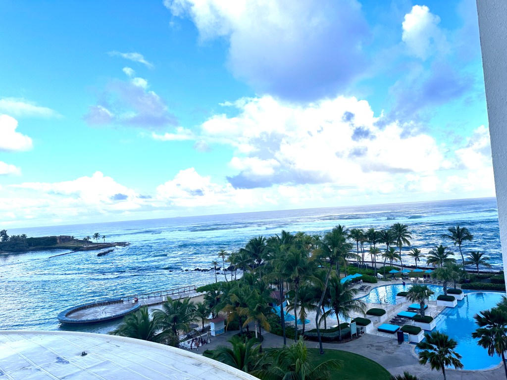 We ended our Caribbean cruise finally and even though we were tired and wanted badly to go back home we still had to stay in San Juan since we purchased an extra 2-day post-cruise (non-refundable). However, we felt re-energized upon seeing our hotel and where it was located! We were booked at Hilton Caribe (4 Star hotel). It is situated right along the turquoise bay with amazing amenities. A very spacious room with an awesome vista of the Atlantic. It included a buffet breakfast with great coffee (very important to me).